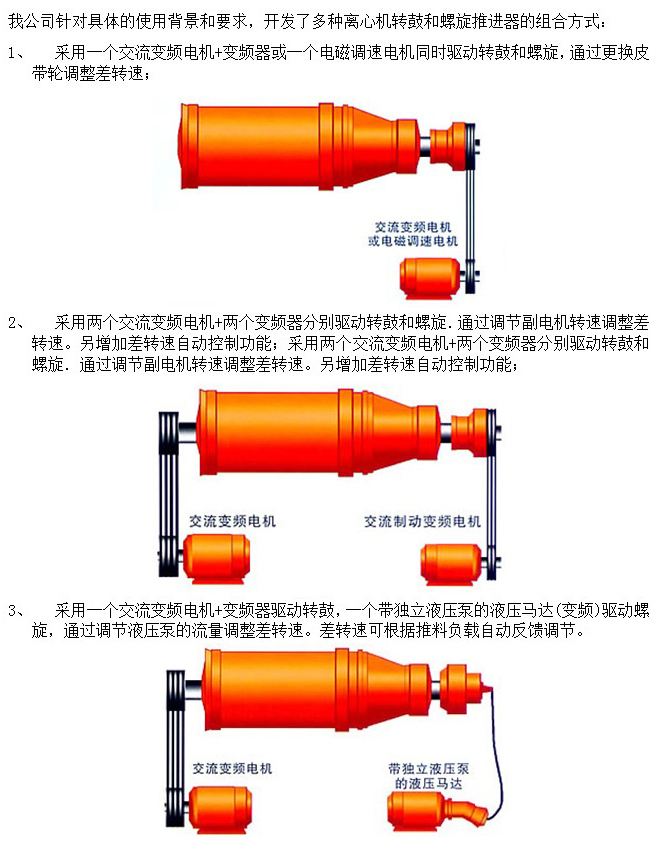 本公司生產的臥螺離心機有LW300、LW350、LW400、LW450、LW500、LW530、LW650、LW760、LW900等九大系列十七種規(guī)格,在轉子結構上分為并流、逆流、復合螺旋、雙向擠壓等形式,在用途上則有濃縮、脫水、分級、濃縮脫水一體等機型,因此可廣泛適用于化工、輕工、制藥、食品、環(huán)保等行業(yè)。
